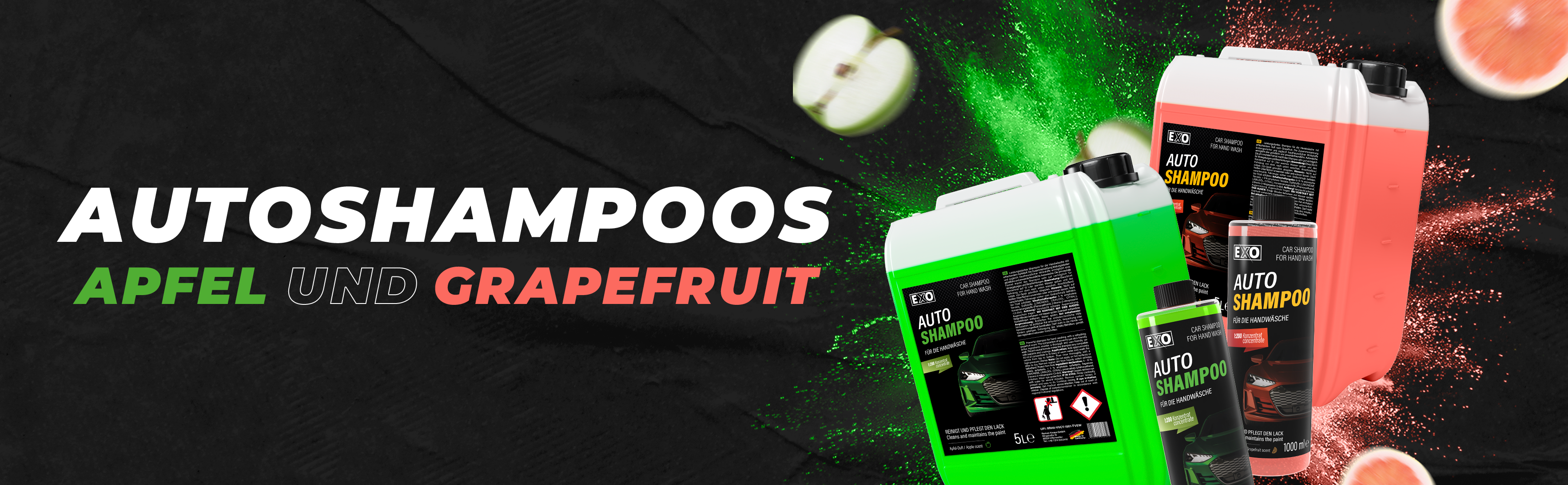 Das Autoshampoo Apfel von EXO® ist ein fruchtig-frisch duftendes Schaumkonzentrat für die material- und anwenderfreundliche Handwäsche. Durch fein aufeinander abgestimmte Wirkstoffe wird eine gründliche Fahrzeugwäsche mit hervorragendem Gleitfilm gewährleistet. Dank der pH-neutralen Formulierung ist das Shampoo nicht aggressiv gegenüber aufgetragenen Versiegelungen und Wachsen und eignet sich hervorragend für die regelmäßige Anwendung. Der betörende Duft nach grünem Apfel rundet das schaumstarke Wascherlebnis ab. Die gezielt niedrigviskose Konzeption des Produkts erleichtert das Vermischen des Konzentrats mit Wasser auch bei niedrigeren Temperaturen. Optimal geeignet zur intensiven Handwäsche nach alkalischer Vorreinigung, z.B. durch EXO® APC oder EXO® PRE CLEANER.